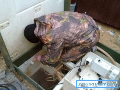 - Wir tauchen Kanalisationsgeräte in die Grube und versorgen sie mit allen erforderlichen Rohren, Schläuchen und elektrischen Kabeln.