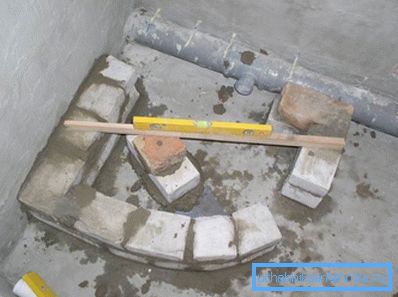 Wie bereits erwähnt, wird eine keramische Duschkabine mit einer hohen Schale 100x90 nicht auf einem Metallrahmen montiert, sondern auf einem speziell vorbereiteten Ziegel- oder Betonsockel.