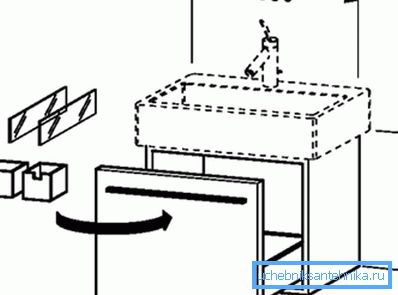 Nachdem die Schränke zusammengebaut sind, können Sie das Waschbecken installieren. Je nach Modifikation des Möbels kann die Spüle separat aufgehängt werden oder umgekehrt, sie kann direkt in die Schrankoberfläche eingebettet werden.