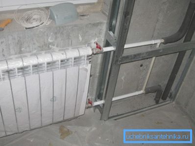In der Regel befindet sich der Heizkörper unter dem Fenster, etwa in der Mitte der Wand. Daher gibt es neben der vertikalen Rohrleitung auch eine erhebliche Länge der horizontalen Rohrleitung im Raum.