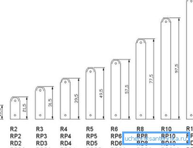 Beachten Sie! Diese Tabelle zeigt die gemittelten Parameter. Die Größe der Heizkörper verschiedener Hersteller kann sehr unterschiedlich sein. Wenn Sie die Abmessungen auf einen Millimeter genau abstimmen müssen, sollten Sie die Merkmale eines bestimmten Modells im Voraus studieren. Es ist besser, die gewünschte Kopie mit einem Maßband zu messen.