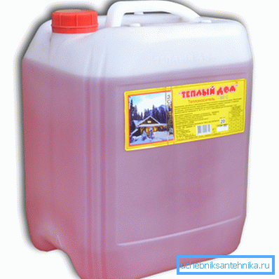 Wenn die Temperatur unter den Mindestwert fällt, friert das Frostschutzmittel nicht ein, sondern wechselt in einen weichen gelartigen Zustand. Daher ist diese Flüssigkeit zur Warmwasserbereitung eine ausgezeichnete Option, beispielsweise für Landhäuser, die von den Eigentümern im Winter gelegentlich besucht werden.