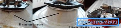 Wenn sich nach all den Bemühungen herausstellte, dass die Ursache der Störung ein "punktiertes" Heizelement ist, muss es ersetzt werden. Machen Sie es einfach, aber Sie müssen vorsichtig handeln, damit das Öl nicht gegossen wird. Außerdem sparen unsere chinesischen Freunde lieber an der Qualität der Dichtungen, was oft zu einem leichten Austreten von Öl führt. Der Funktionsalgorithmus ist der gleiche.
