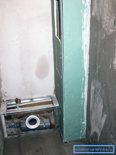 Unabhängig davon lohnt es sich, diese Option als Shtroblenie in Betracht zu ziehen. Ein solches Ereignis kann nur in der Phase der Erstinstallation von Rohren durchgeführt werden, da es in speziellen Nischen installiert wird, die in die Wände eingelassen sind. Die Arbeit besteht darin, dass vor dem Einbau von Rohren in die Wände lange Rillen ausgeschlagen werden, deren Tiefe dem Durchmesser der Rohre entspricht. In diesen Nischen werden Kommunikationsleitungen installiert und anschließend verputzt. Mit dieser Option können Sie Platz sparen, ist jedoch nur bei der Erstinstallation oder Überholung des Toilettenraums realisierbar.