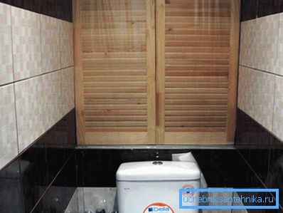 Neben anderen Optionen, mit denen Sie die Rohre in der Toilette verstecken können, ist zu beachten, dass ein spezieller Schrank installiert wird. Tatsächlich sprechen wir über die Installation der gleichen dekorativen Wand, der Unterschied besteht jedoch darin, dass der Schrank neben der Außendekoration auch über Funktionalität verfügt. Wenn die Abmessungen des Raums dies zulassen, kann man bei der Montage der Latte etwas mehr Abstand von der Wand einnehmen, als für die dekorative Wand benötigt wird, und in dem hier erhaltenen Raum eine mit Türen versehene Regalreihe montieren.