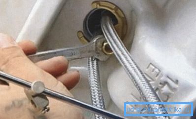 - In der Küche und im Badezimmer mit einem beschädigten Geflecht oder einem schlecht geformten Ärmel dürfen keine flexiblen Verbinder verwendet werden. Die Verwendung eines Eyeliner, der mit solchen Komponenten montiert ist, führt wahrscheinlich zu Lecks oder einem Durchbruch des Systems.