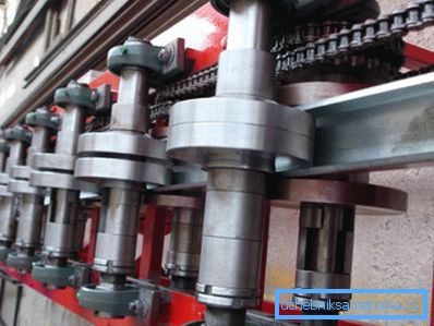 - Als nächstes werden Streifen der Falteinheit zugeführt, wo das Profil des zukünftigen Rohrs mit Hilfe von Rollenmechanismen unterschiedlicher Größe gebildet wird.